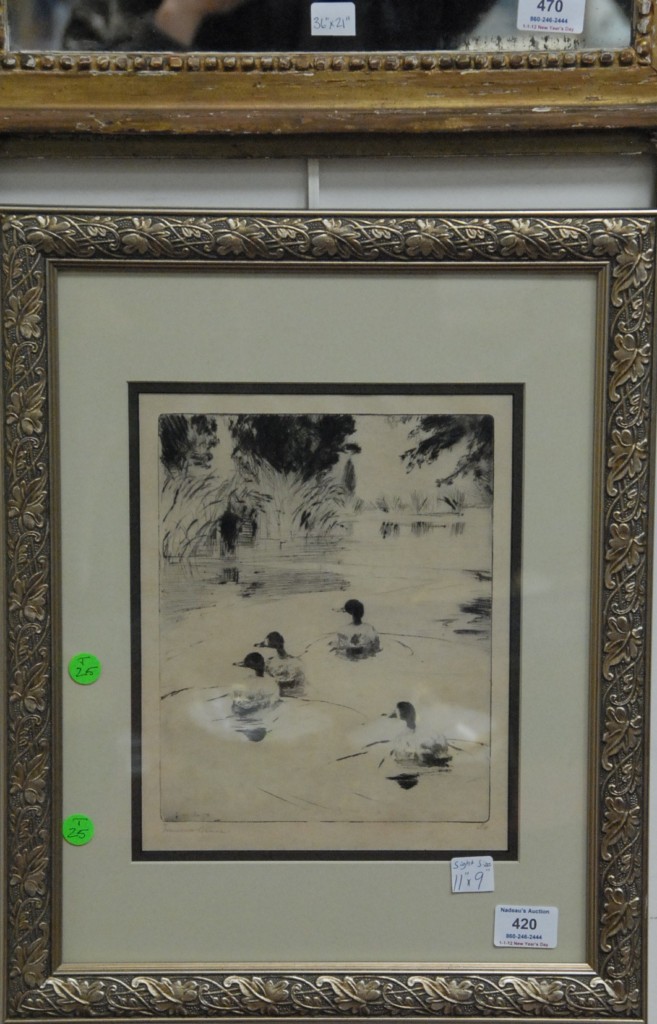 Frank Weston Benson 1862-1951 MORNING drypoint signed lower left Frank Benson and lower right 33/35 – Frederick Keppel & Co. paper label on reverse sight size 8 1/4 x 10 1/4.