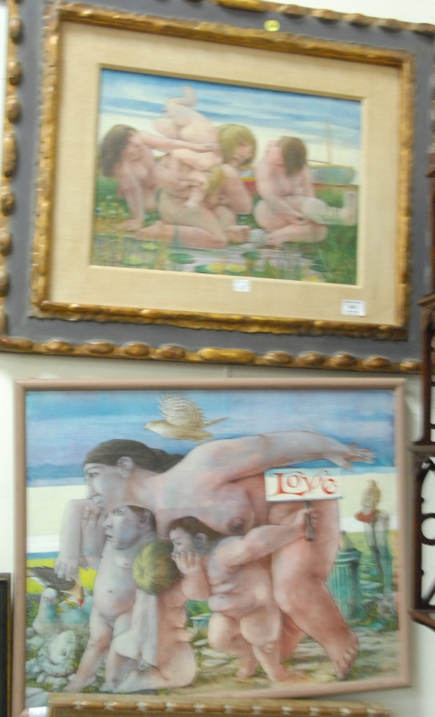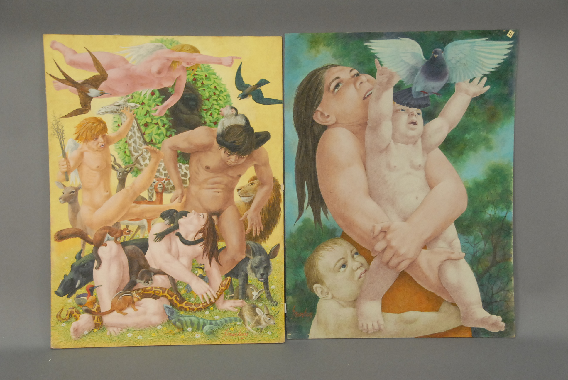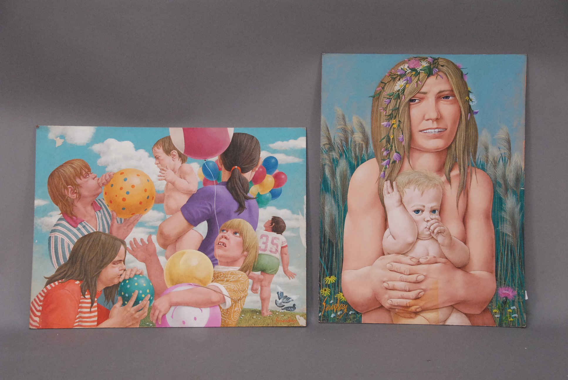 Vincent T. Smarkusz 1919-1974 two paintings Nude Flower Girl with Child oil on board signed lower left Smarkusz 32 x 24 and Balloons oil on board signed lower right 24 x 32