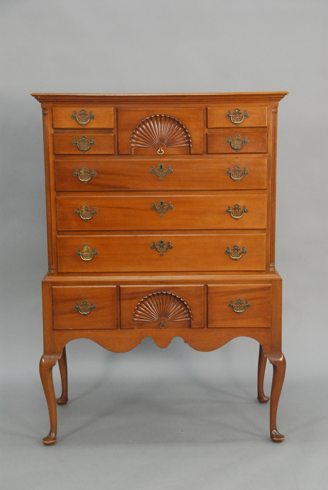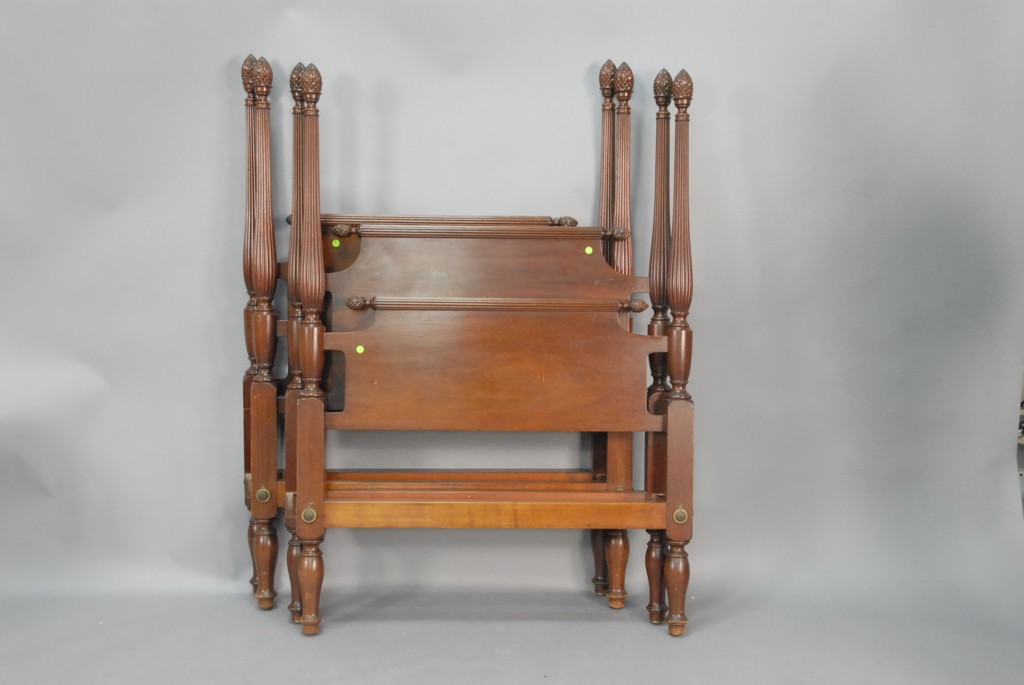 Margolis mahogany Federal style sideboard with shaped top over conforming cabinet of two drawers flanked by two doors on square tapered legs and spade feet, stamped on reverse Margolis. height 38in. length 68in. diameter 24in.