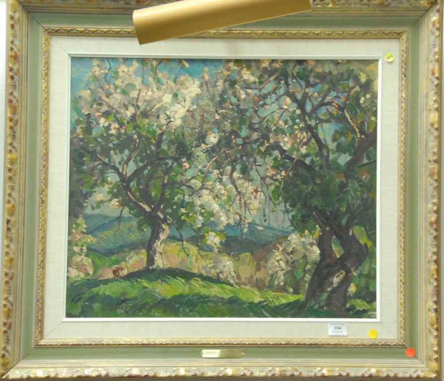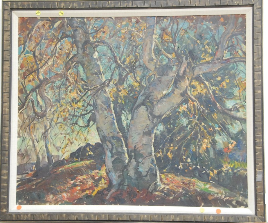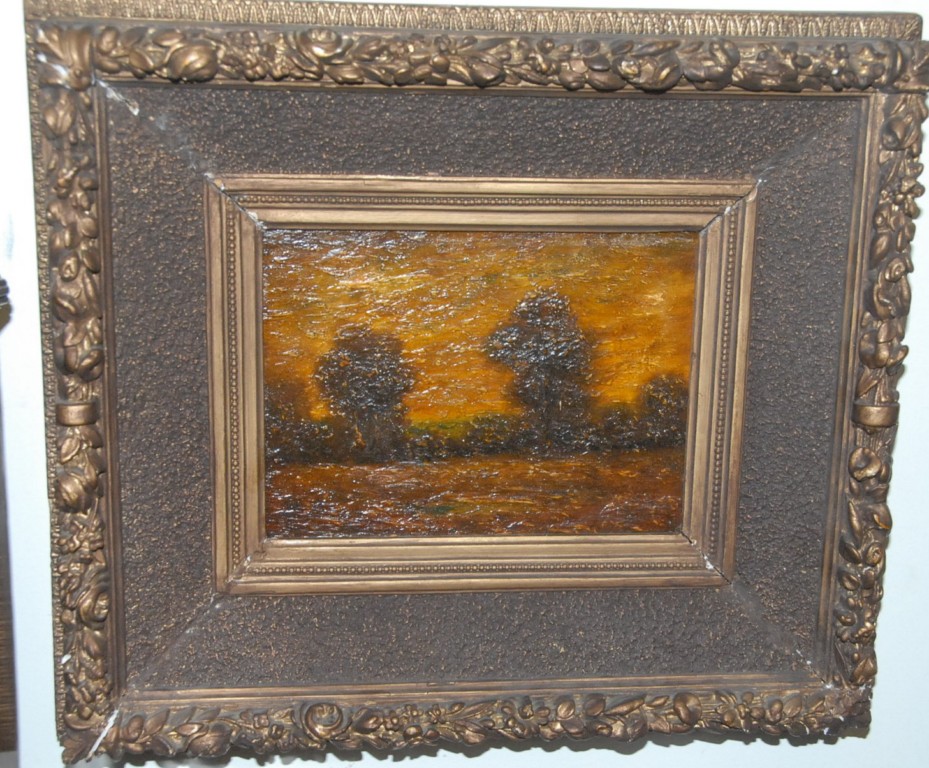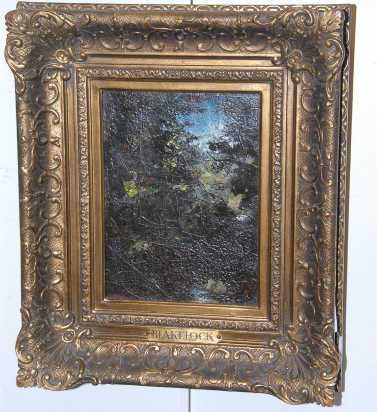 Ralph Albert Blakelock 1847-1919 MOUNTAIN BROOK oil on canvas signed lower left R. A. Blakelock titled on reverse Mountain Brook Vose Gallery of Boston label on back University of Nebraska no. NB1-1834-II 8 x 6