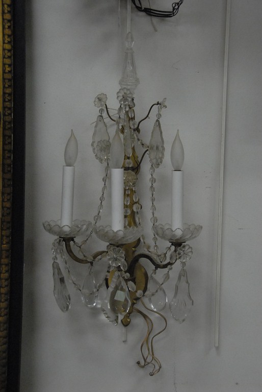 Pair of carved and paint decorated sconces. Provenance: property from a home in Rockville Center, New York which was decorated by Iris Apfel. ht. 64in.