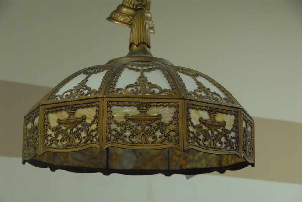 Louis XVI style chest with brass gallery top with inset beige marble, two grillwork doors opening to reveal fitted drawer interior over two drawers on turned legs with all over green paint highlighted with gold, early 20th century. Provenance: property from a home in Rockville Center, New York which was decorated by Iris Apfel. ht. 53in. wd. 36in.