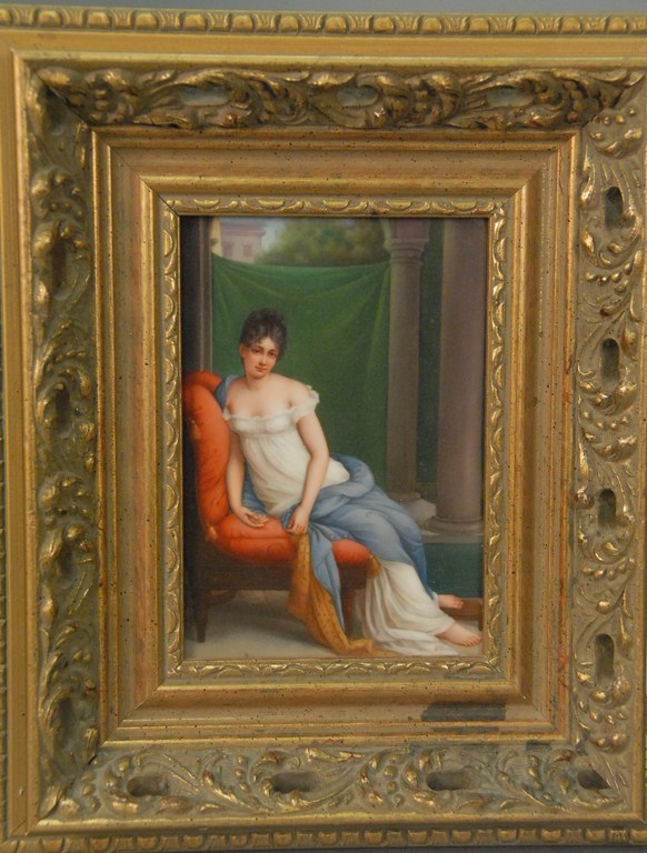Seven piece lot of Venetian style paintings with elaborate frames. Provenance: property from a home in Rockville Center, New York which was decorated by Iris Apfel. 4 1/2 x 6 to 9 1/2 x 12