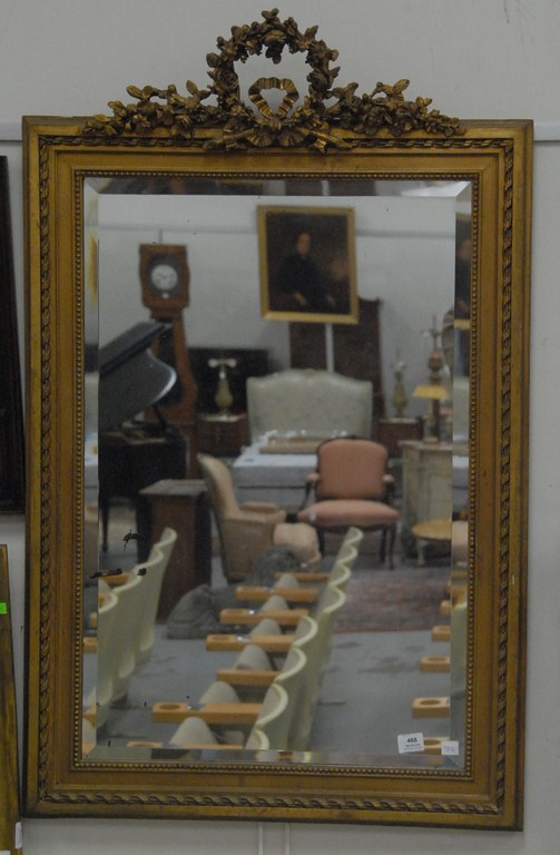 Gesso and gilt mirror, Louis XV style with a central cartouche containing foliate crests and garlands, late 19th century. Provenance: From prominent Woodbridge, Connecticut family collection. ht. 48in. wd. 30in.