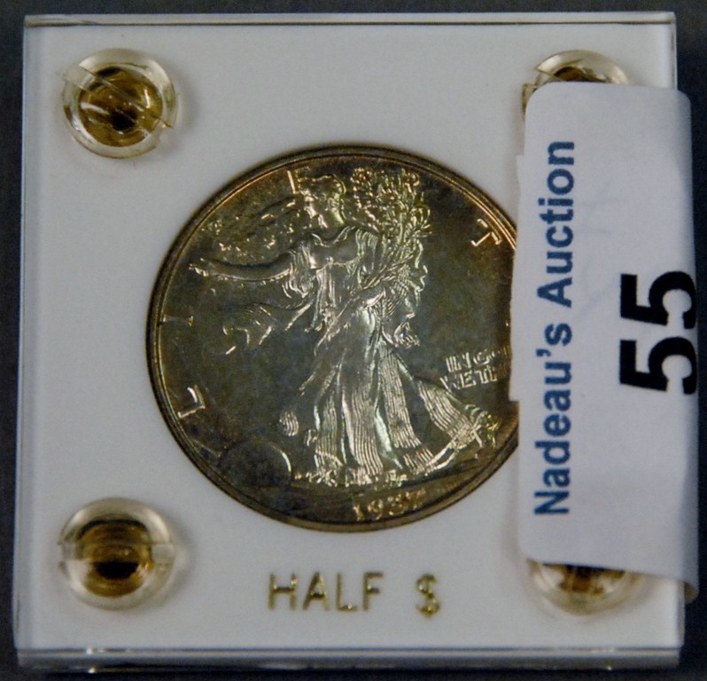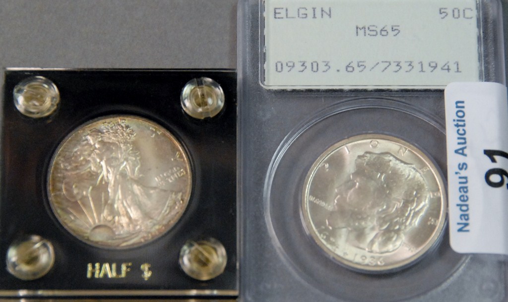 Two coins 1943 half BU and 1936 Elgin commemorative MS-65.