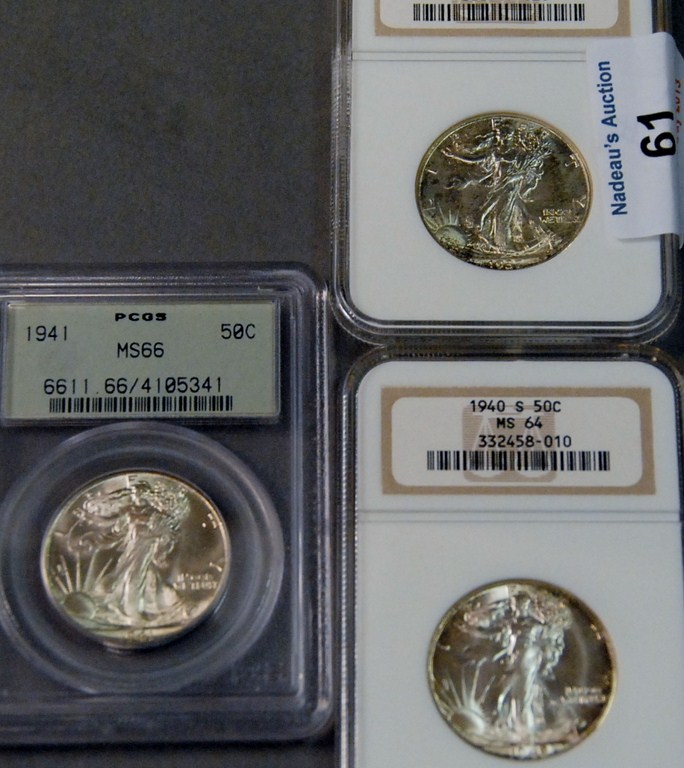Three half dollars 1937-S NGC 64, 1941 PCGS 66, and 1940-S NGC 64.