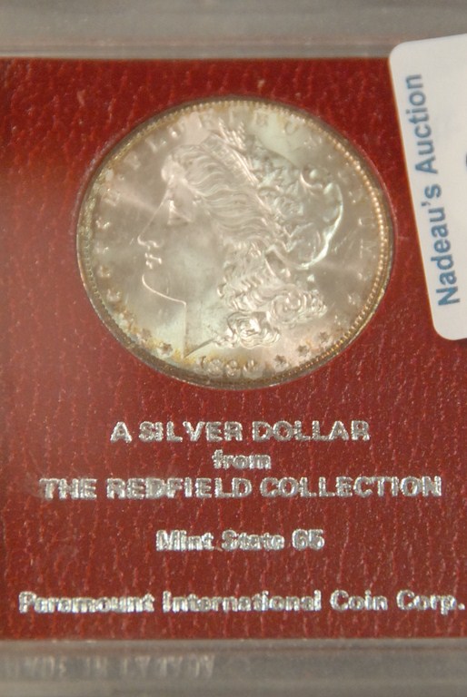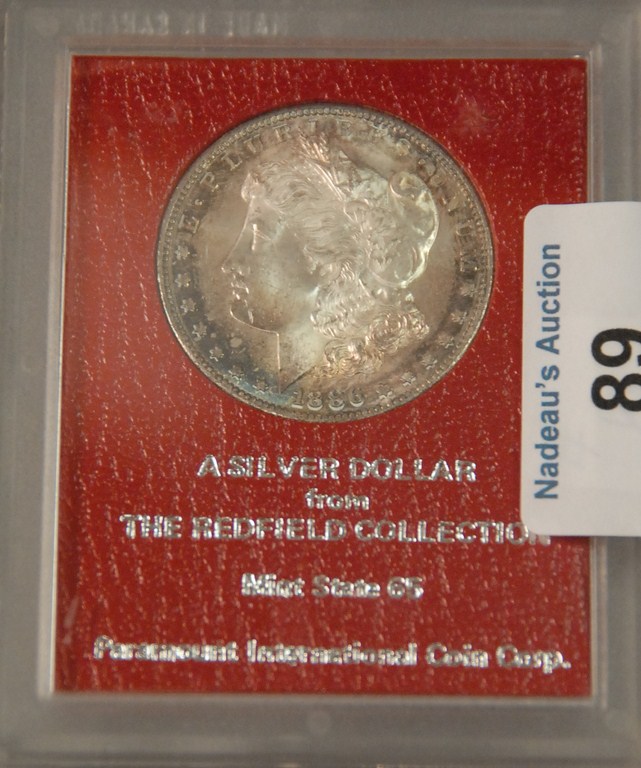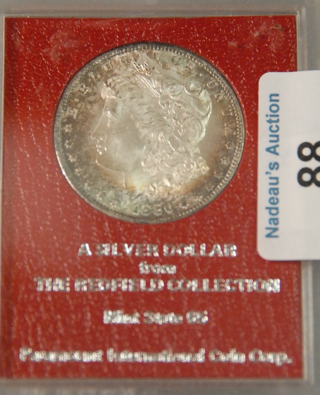 One silver dollar 1890-S Mint State 65 Redfield Holder.