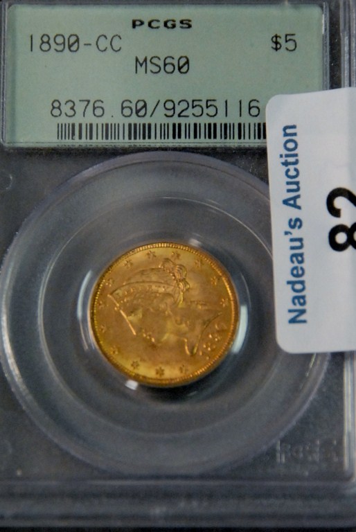 One five dollar gold half eagle 1890-CC PCGS 60.