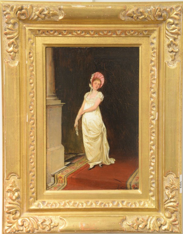 IGNAZ MARCEL GAUGENGIGL 1855-1932 Going to the Ball oil on panel signed lower right I.M. Gaugengigl 12 x 7 3/4 sold at Sotheby’s New York March 14, 1996 for 4,600