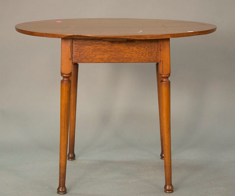 Chippendale cherry tilt top tea table having round top above bird cage unit over trumpet formed turned shaft with ring turning, all set on tripod base ending in snake feet, attributed to Eliphalet Chapin, East Windsor, CT circa 1775. ht. 28 1/2 in. dia. 36 3/4 in. Provenance: Nathan Liverant & Son The Estate of Sylvia Leven Included Documentation: Copy of Original Bill of Sale 1990 and photographs.