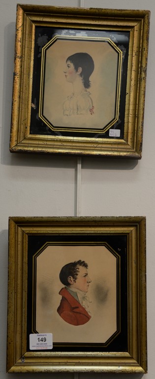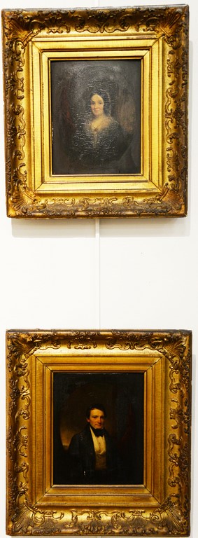 GEORGE LINEN 1802-1888 Pair of small oval portraits Dudley Sanford Gregory 1800-1874 and his Wife Ann Maria Gregory 1805-1871 oil on panel 7 1/2 x 6 1/4 This pair of paintings is related with Edward Lamson Henry painting. Provenance: Mrs. Ernest Franklin Tyler France Gregory to current Consigner Reference: Photographic copy is in Frick Art Reference Library, N.Y. Image Id# 50814 & 50815