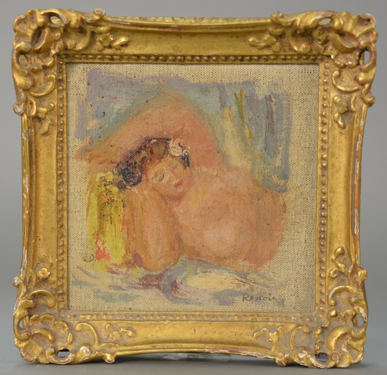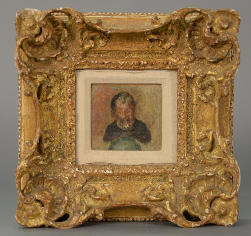 PIERRE AUGUSTE RENOIR 1841-1919 Viellard Aux Cheveux Gris oil on canvas unsigned having Hammer Gallery New York stamp on reverse #21857-5 2 1/2 x 2 3/4 Provenance: Provenance: From the collections of Theodore Schempp, Paris M. Knoedler & Co. Inc., New York Mrs. Edward F. Hutton, New York Hammer Gallery, NY 1973 Current Private Collection Included Documentation: Hammer Galleries folder containing original bill of sale dated August 8, 1973, handwritten letter from the Gallery stating it’s authenticity, and an original photograph of this painting.
