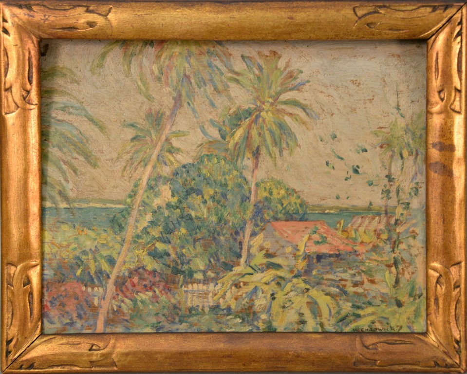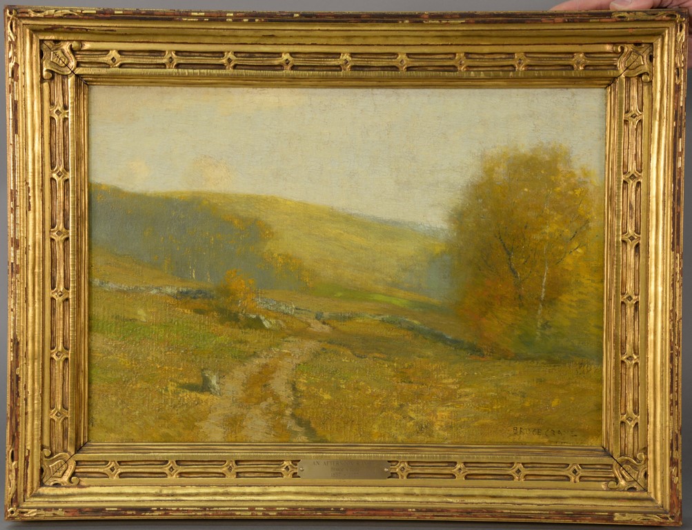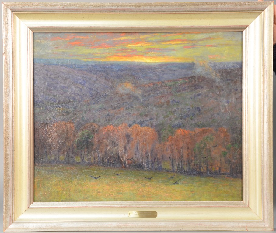 HARRIET RANDALL LUMIS 1870-1953 November Morning oil on canvas unsigned stenciled monogram on back of canvas R.H. Love Galleries label on reverse #1127 in their catalog 21 x 26