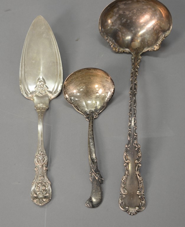 Three piece lot of sterling silver to include a punch ladle, Francis I pie server, and a Wallace small ladle. lg. 10 1/2 in., lg. 9 1/2 in., and lg. 6 1/2 in. 10.6 t oz.
