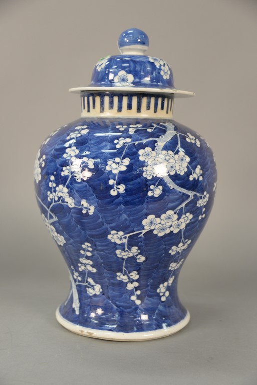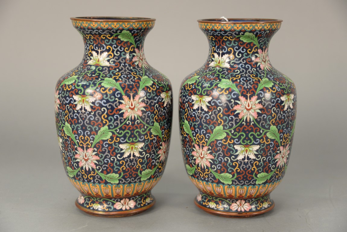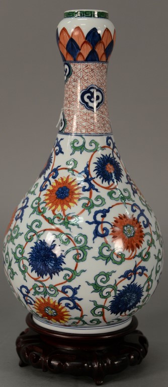 Chinese porcelain double gourd vase with painted blossoming flowers and scrolling vines having Jiajing mark on bottom, in fitted box, 19th – 20th century. vase ht. 13 in.