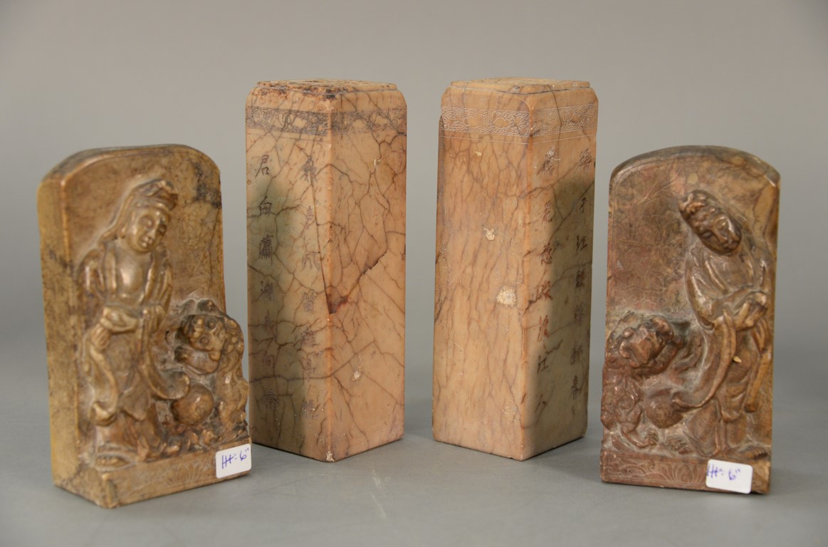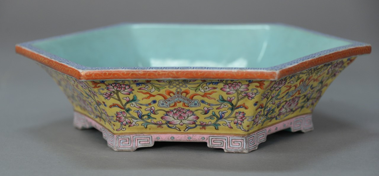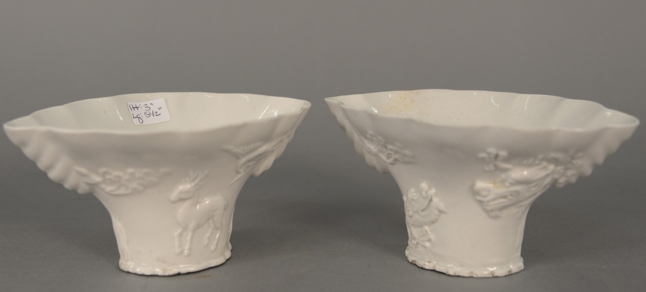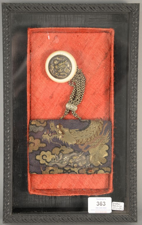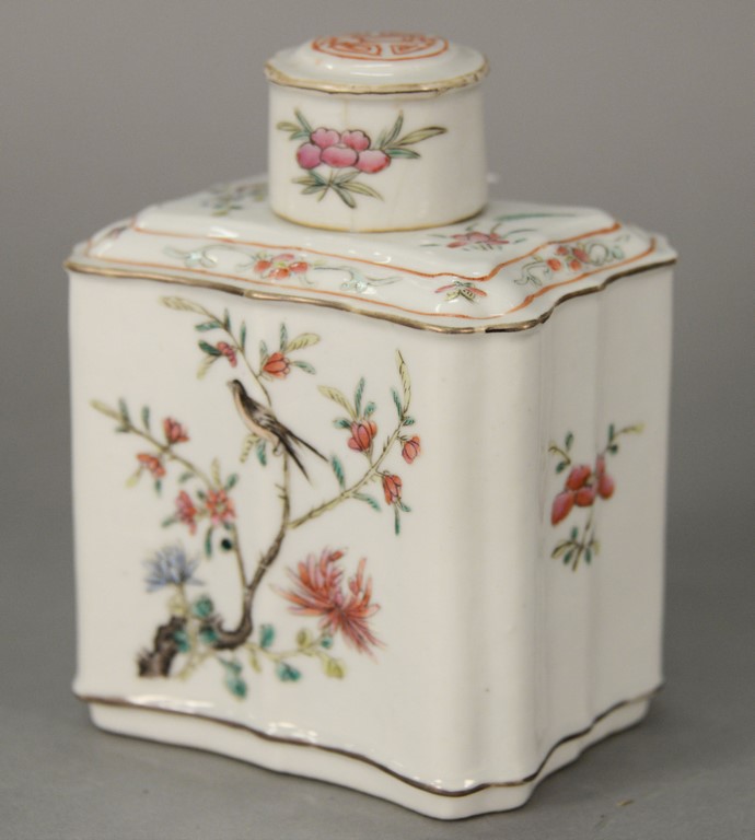 Pair of porcelain plaques, one with bird and flowers and one with bird, tree, and flowers, each signed upper right in bamboo frames. plaque size: 17 x 13