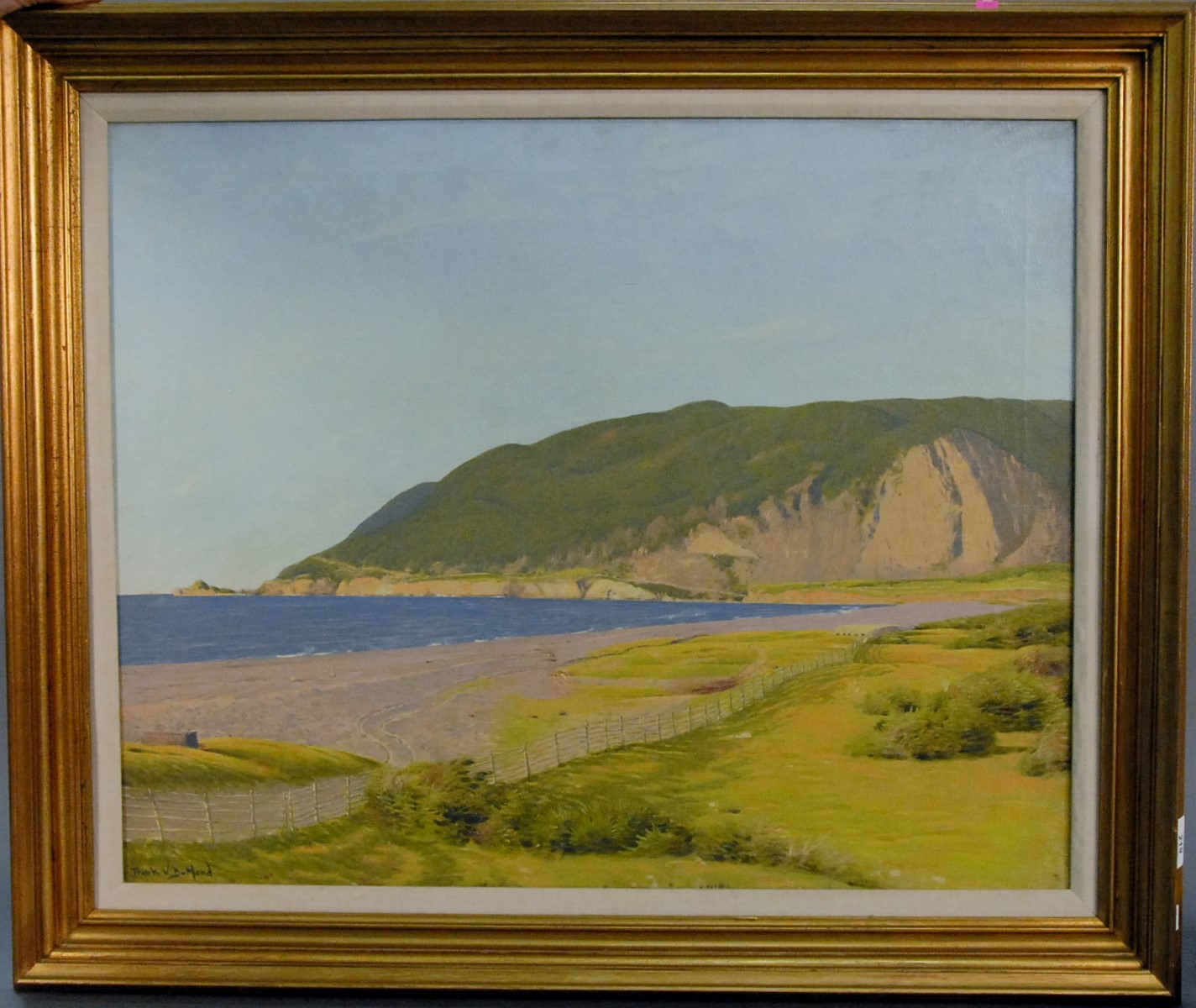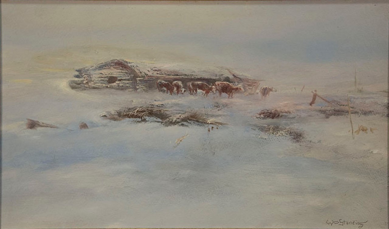 WILLIAM STANDING 1904-1951 In Need of a Line Rider oil on board signed lower right Wm Standing Gallery letter and postcard on reverse 12 x 20 Provenance: GAllery 85 Billings, MT 1968 Current Private Collection Included Documentation: Gallery 85′ letter and postcard stating that the previous owner bought this painting the summer of 1968 at Gallery 85, Billings, Montana