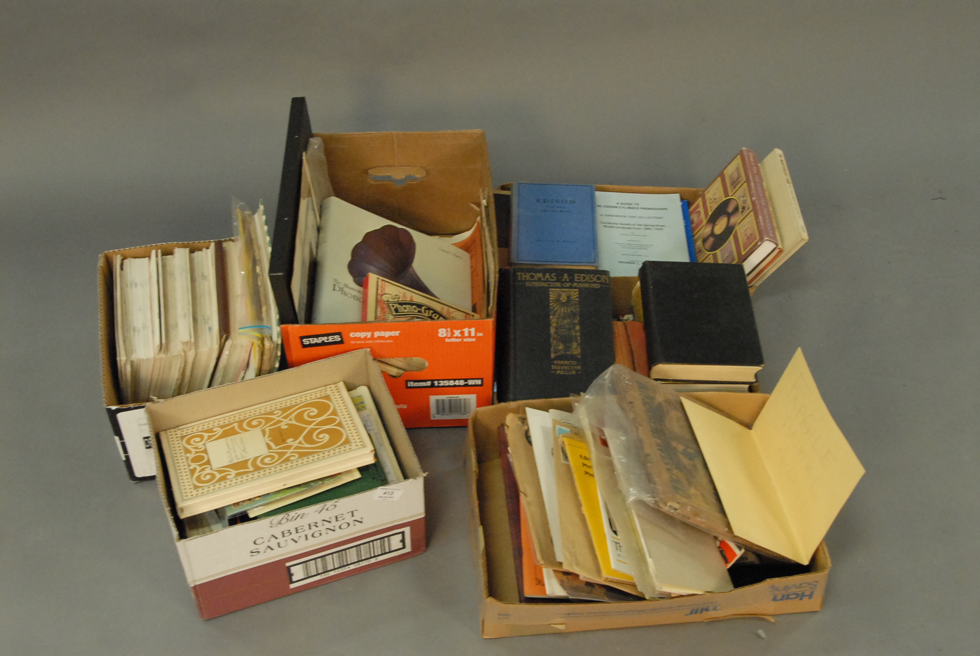 Five boxes of miscellaneous reference books and phonograph related papers.
