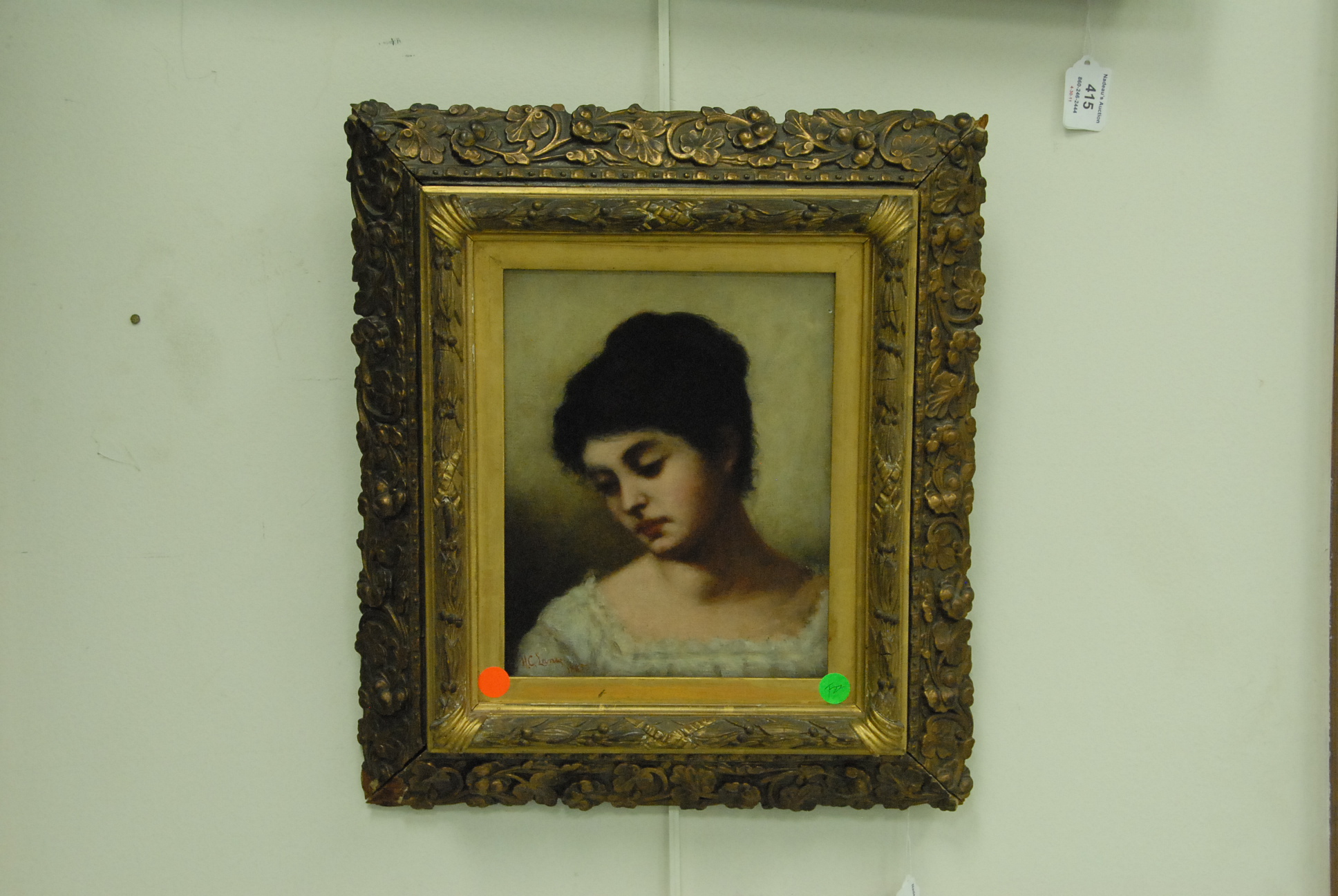 Harriet C. Lane Late 19th century bust of a young girl oil on canvas, signed lower left H. C. Lane 1885.