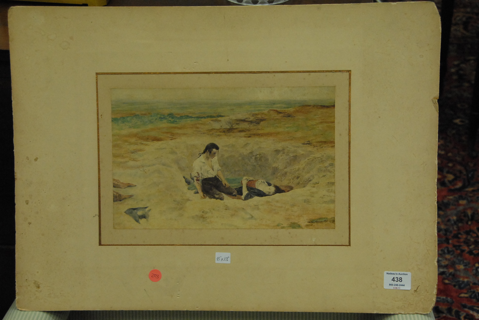 of a wounded man and woman, signed lower right, M. Maurice Leloir.