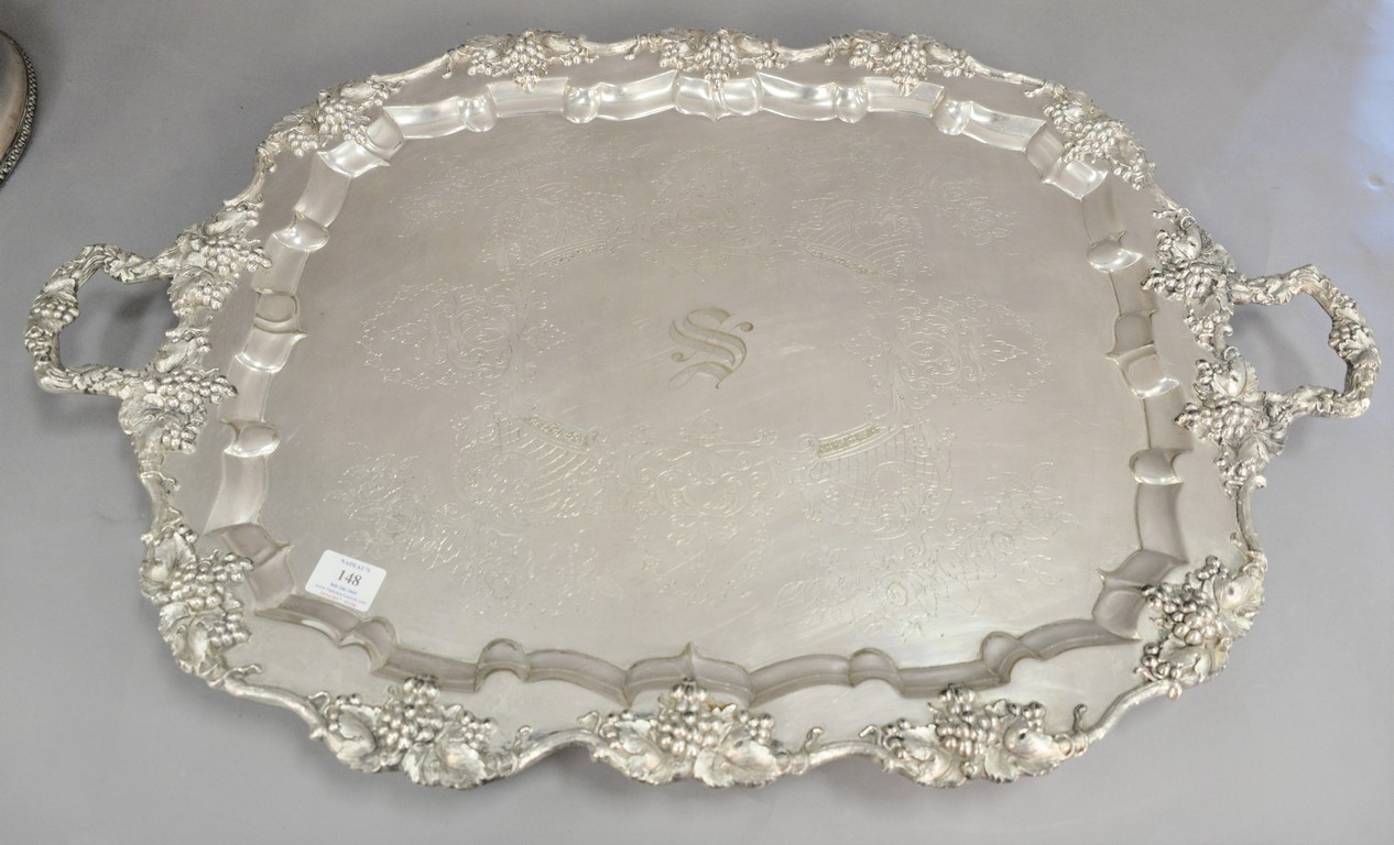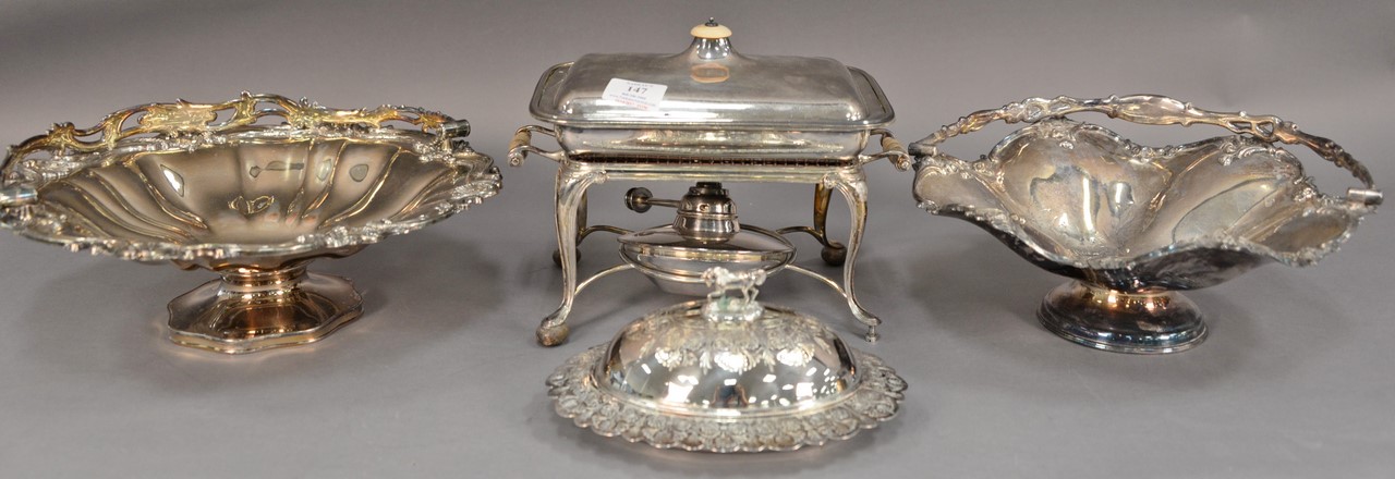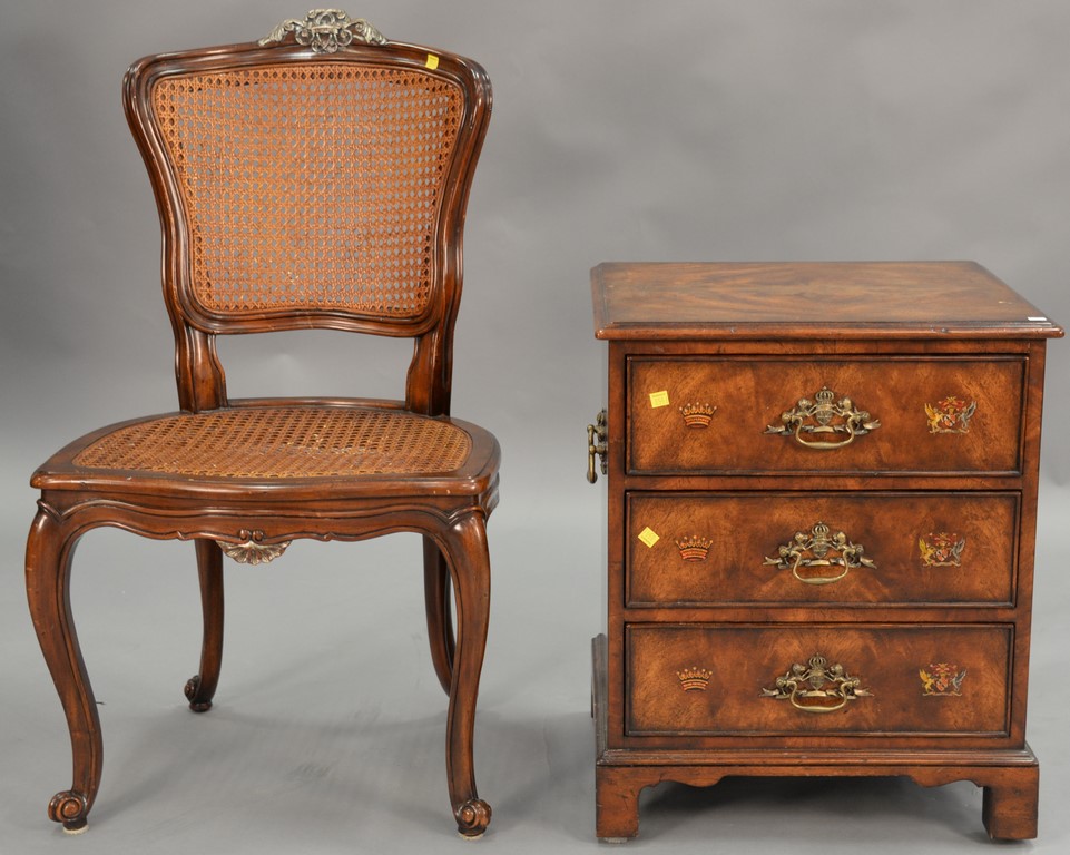 Five piece lot to include a group of three hardstone sculptures: tiger stone kilin with vase in fitted box and wood stand amethyst carp tiger stone rhinoceros and a pair of jade peaches, 20th century.