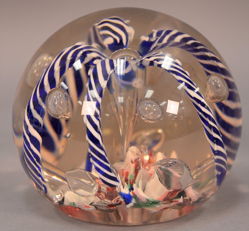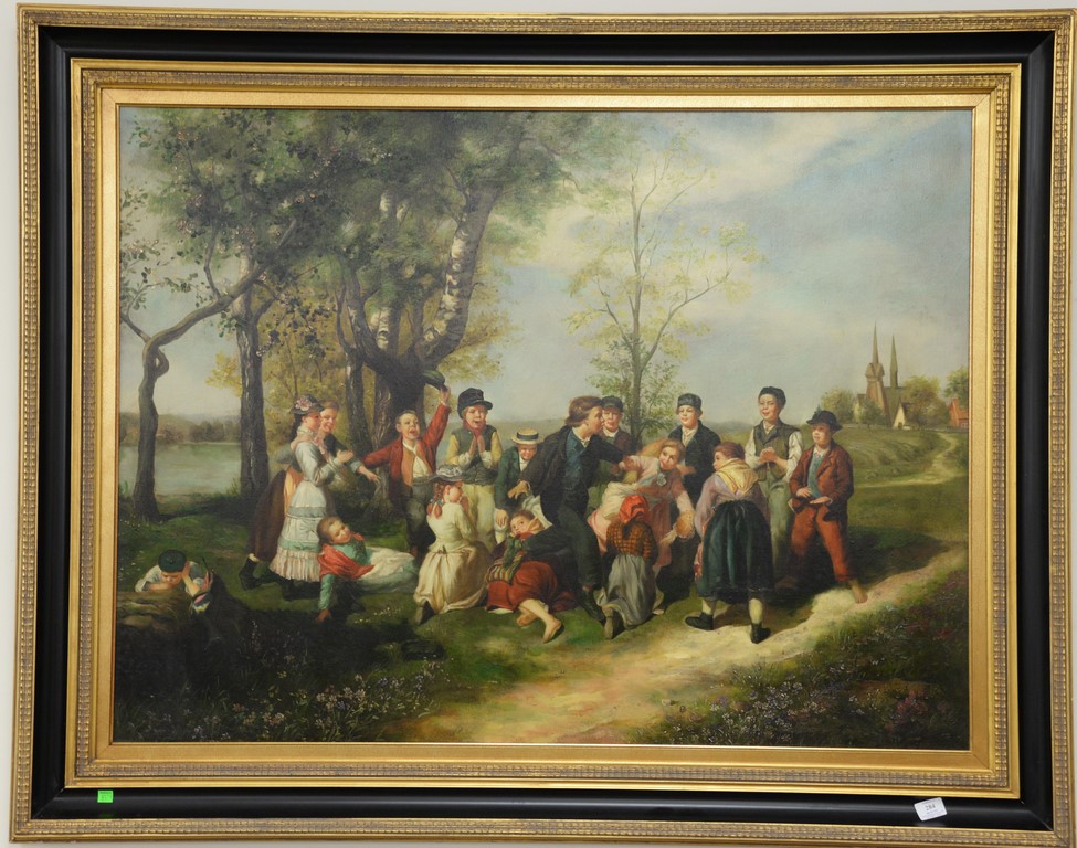Archaic bronze globular tripod Ting vessel with slightly raised scrolling band above large band with cicadas and geometric design with two loop handles, bronze has colored patina.
