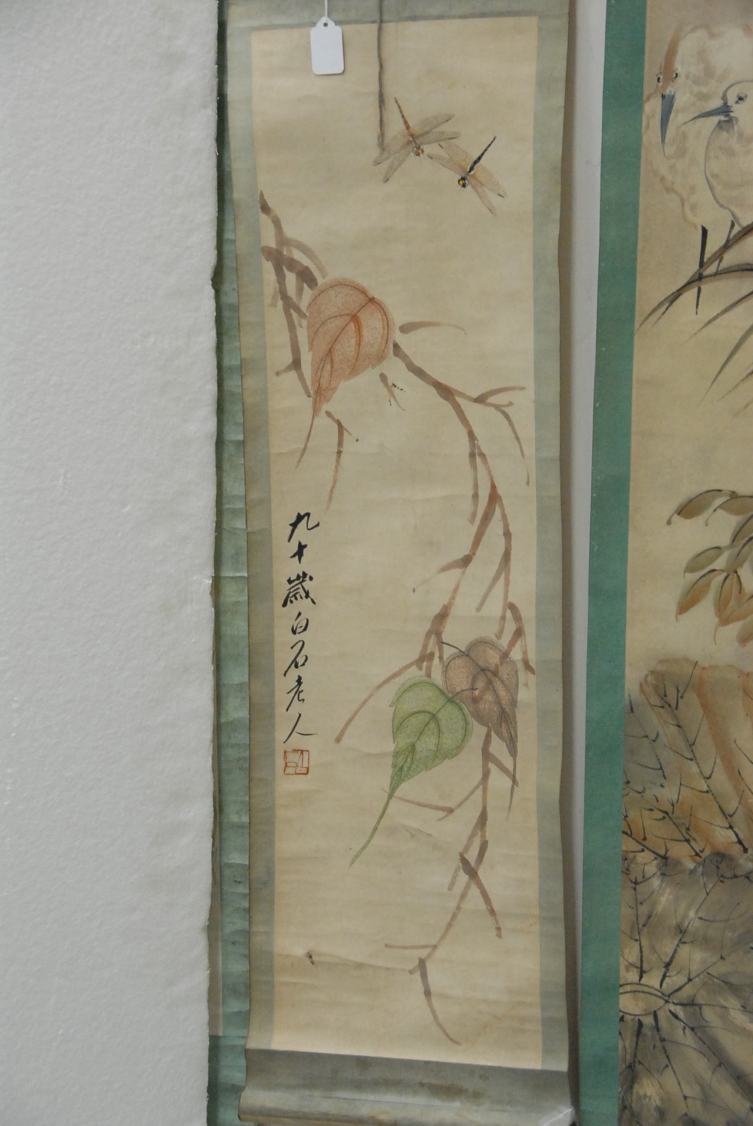 Two items, an Early Republic period famille rose hanging wall vase signed by famous artist Liu Yu Qin, Late Qing Dynasty 19th century famille rose porcelain vase with birds and plum blossom design, marked Cheng Yi Ting.