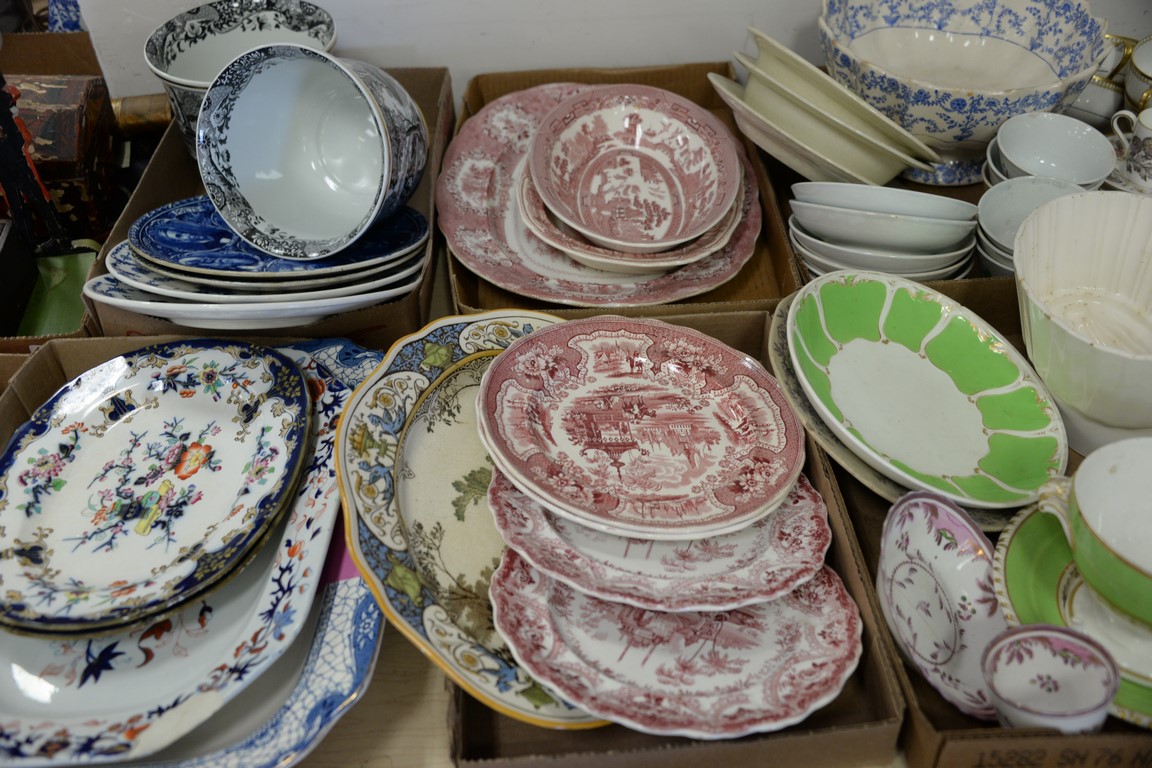 Two Chinese saucer dishes, one 18th century – 19th century Famille Rose, the other is unusual under glaze blue and gold, first half 19th century, some fritting.