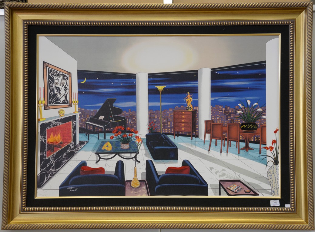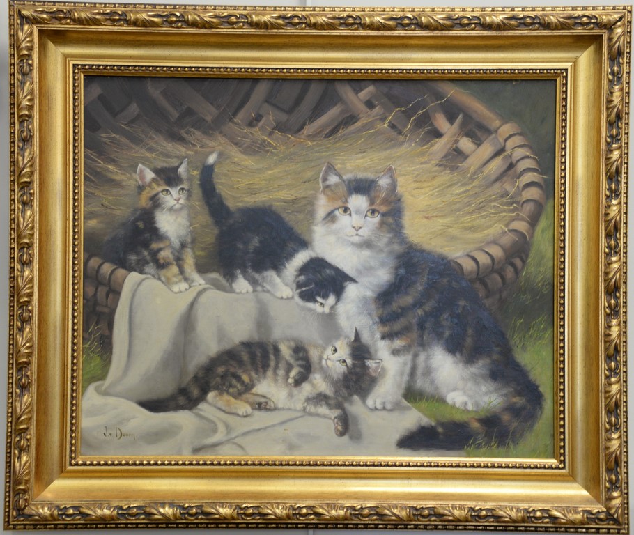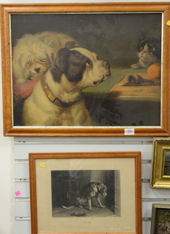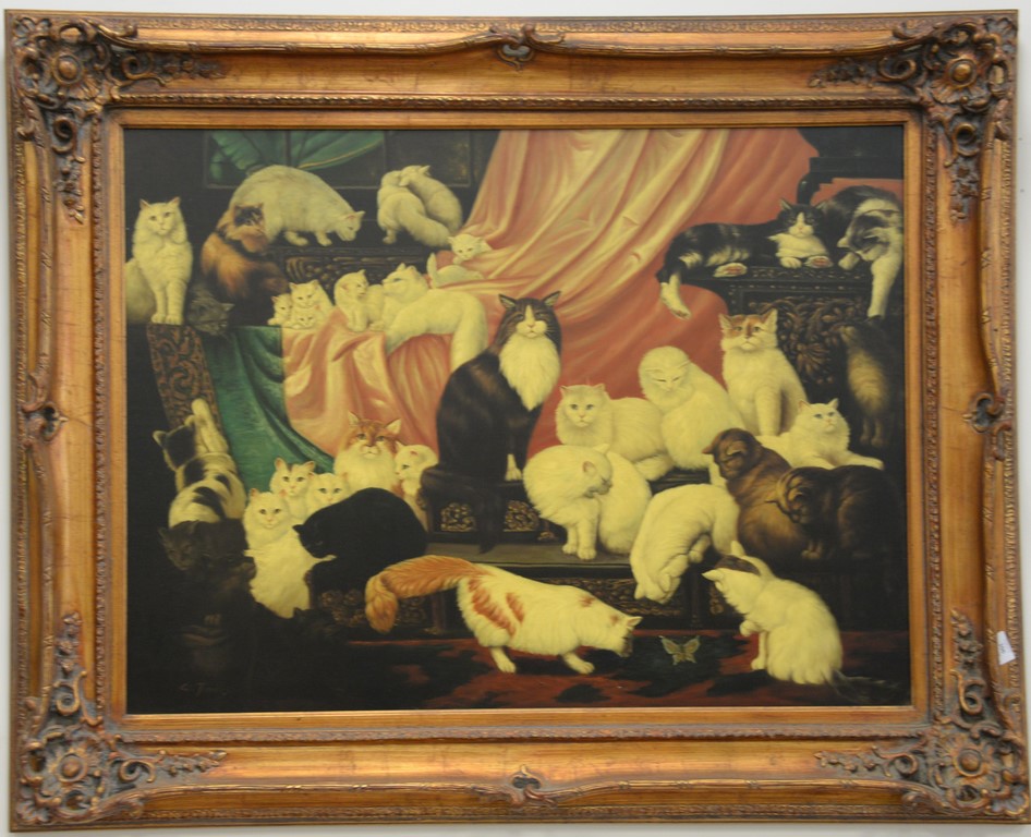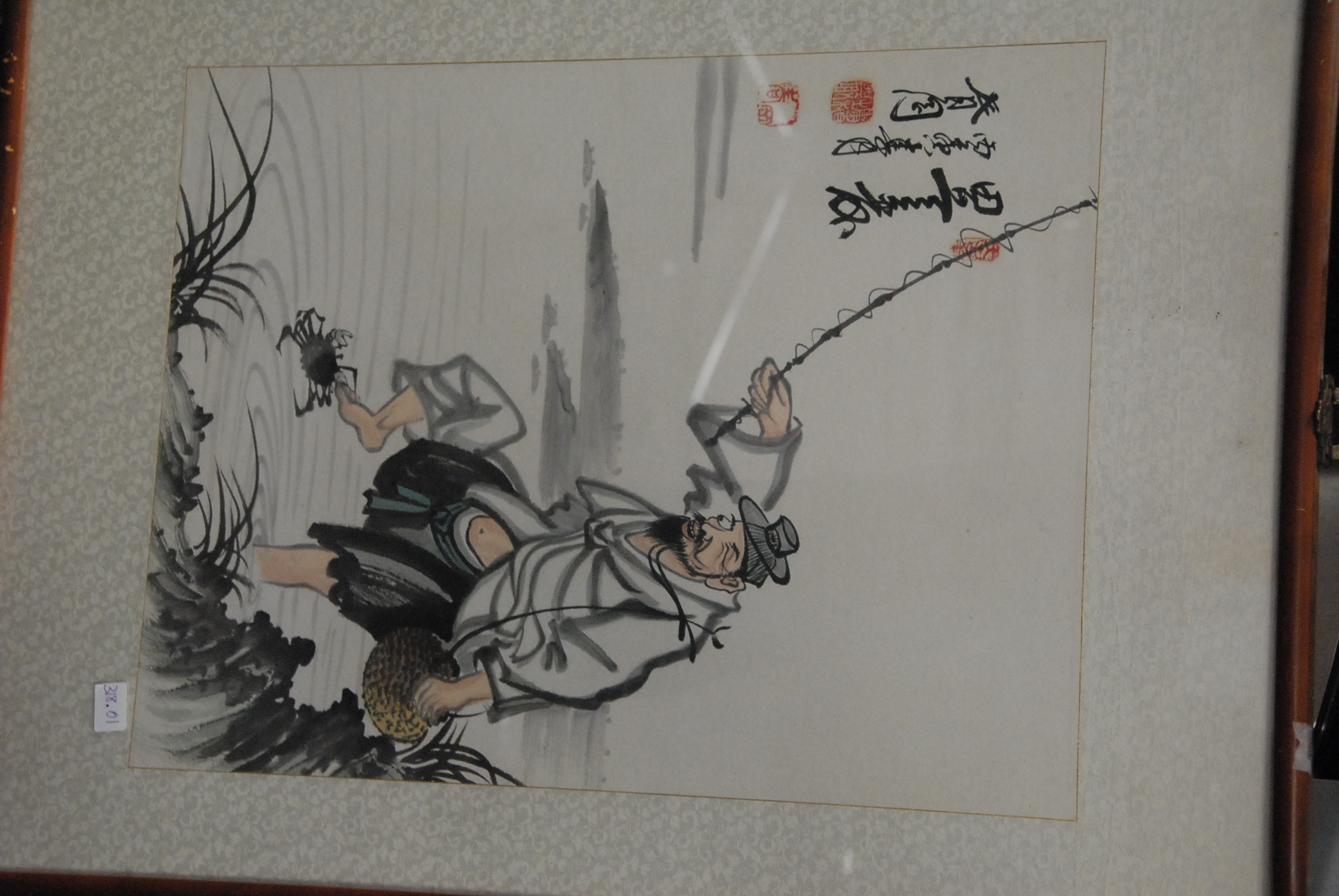 Framed Japanese painting on silk of monkey hanging upside down on a branch, signed Toun, inscription to the effect: Best regards in the year of the monkey, 19th century – 20th century.