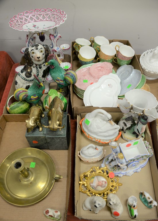 Five Asian bronze figures, one Chinese standing brass Milefo and the other Japanese bronze duruma seated on reclining shishi also a group of three miniature Southeast Asian figural bronzes.