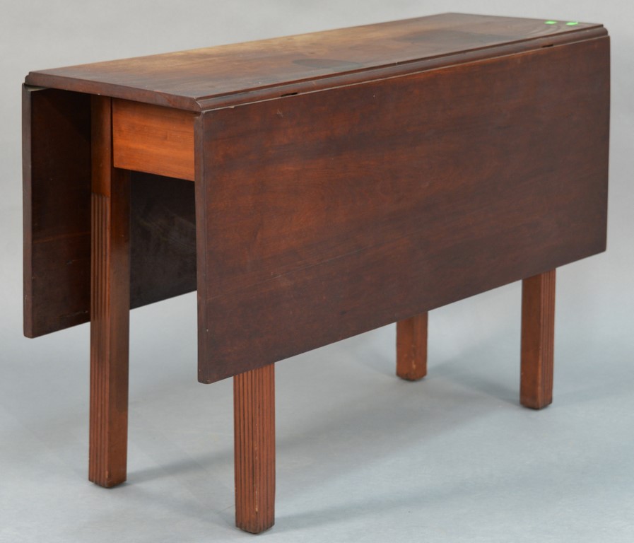 Chippendale cherry drop leaf table on square fluted legs, New England, circa 1760. height 28 1/2 inches, open: 44 1/4 x 47 1/2 Provenance: Estate of R. Donald Bassette