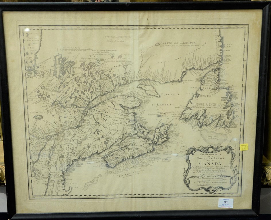 Copper engraved double page map of North America and Canada circa 1755, Partie Orientale de la Nouvelle France ou du Canada – Par Mr. Bellin Ingenieur du Roy et de la marine pour servir…, Jacques Nicolas Bellin Paris.