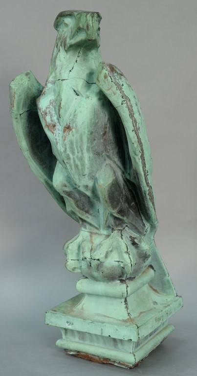 Copper full body eagle standing upright on ball and square base, previously attached at back bottom, probably late 19th century. height 29 inches Provenance: Estate of Dr. Steve Leder