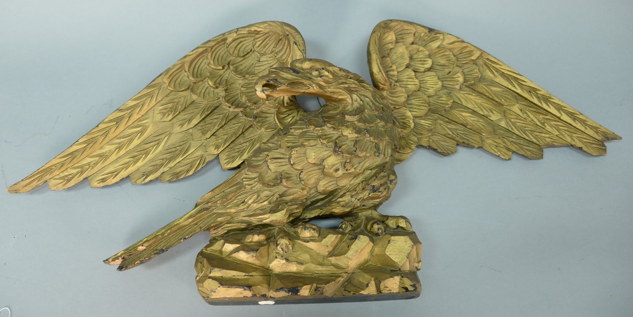 Carved wood eagle with outstretched wings set on realistic rocks, late 19th to early 20th century. height 15 1/2 inches, width 35 inches Provenance: Estate of Dr. Steve Leder