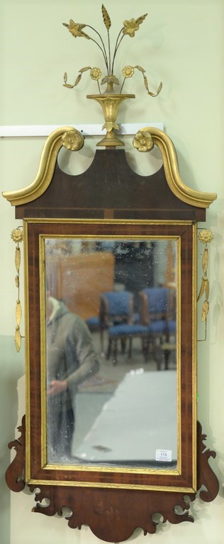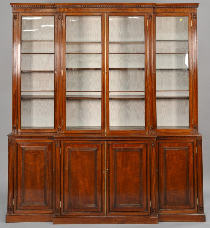 George III mahogany bookcase/cabinet in three parts with four glass doors on lower section with four doors, 19th century. ht. 86 1/4in., wd. 77in., dp. 19in.