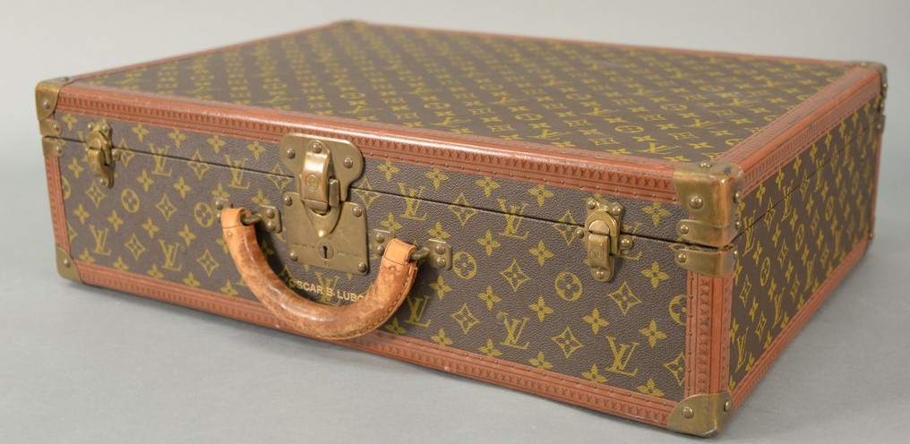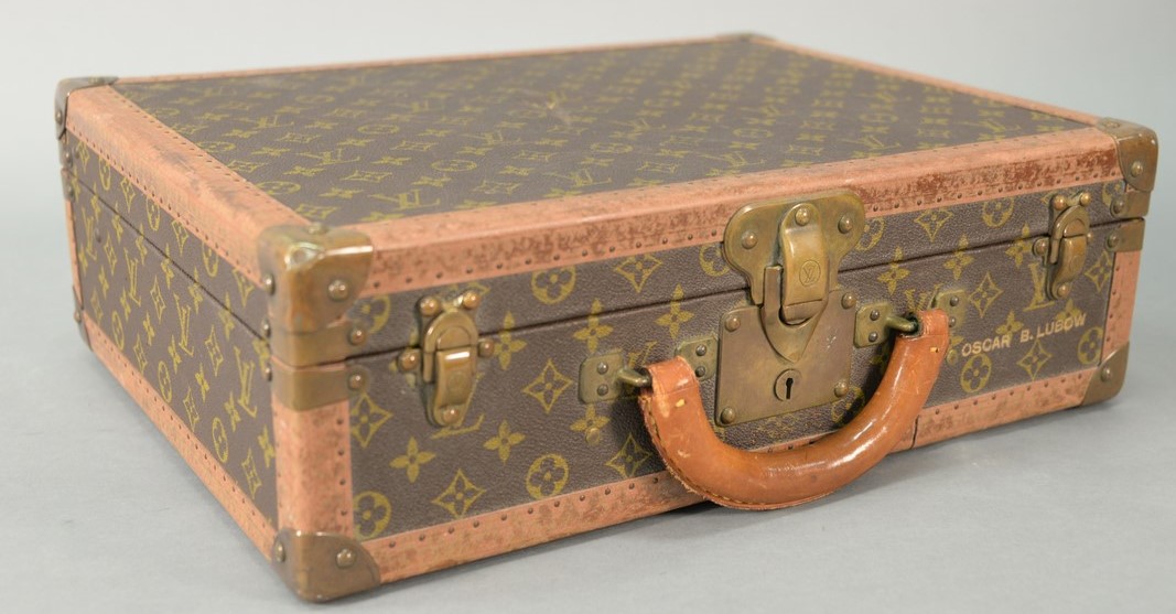 Louis Vuitton steamer trunk having six drawers inside, three hangers along with partition, label inside reads: Arthur Gilmore E. 52nd St. N.Y.