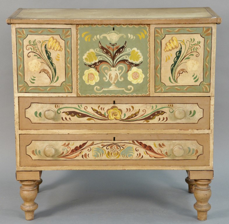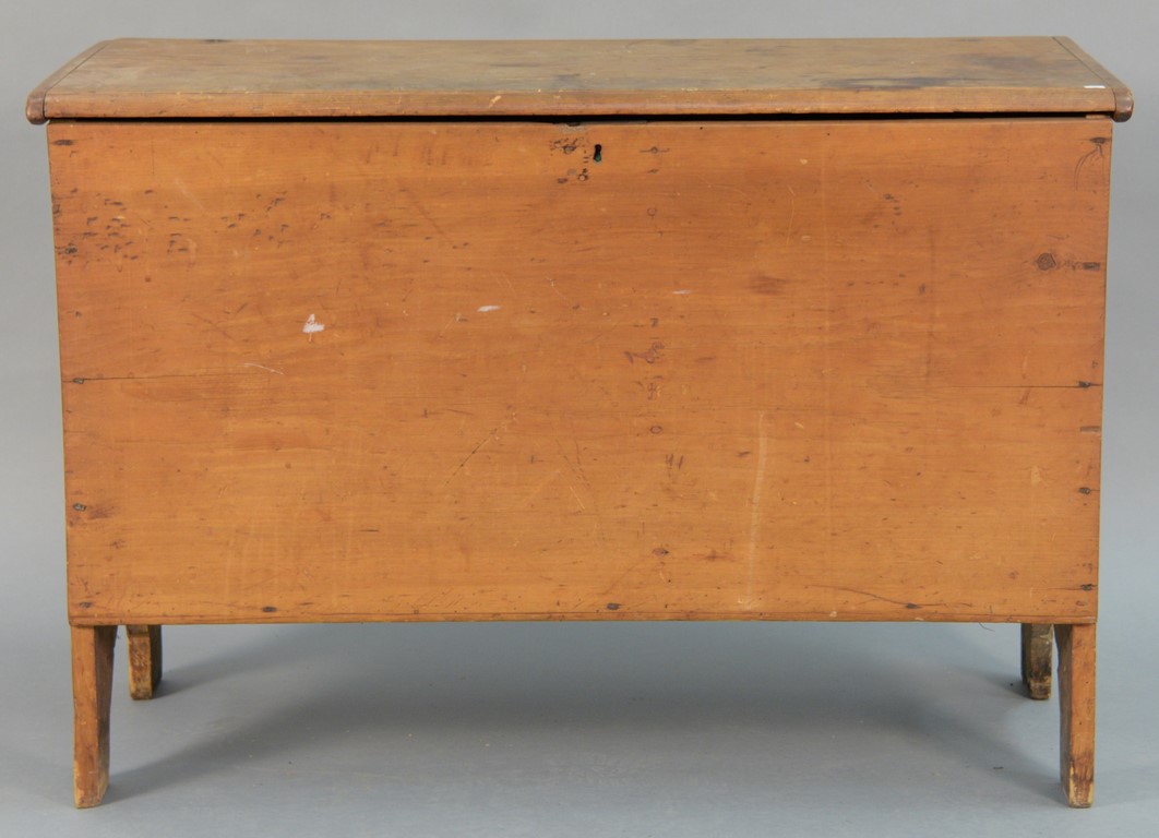 Primitive lift top blanket chest on bootjack ends with original snipe hinges, late 18th century.