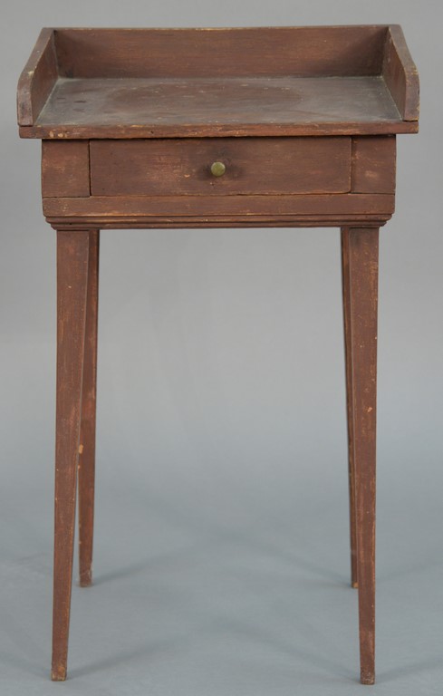Primitive one drawer stand with gallery back all on square tapered legs, early 19th century.