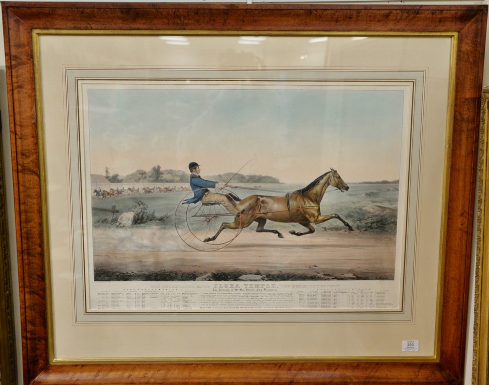 Currier & Ives large folio hand colored lithograph The Celebrated Mare Flora Temple, the Queen of the Turf Entered according to act of Congress in the year 1860 by Currier & Ives marked lower left: Lith & pub by Currier & Ives sight size 20 x 27 3/4 Provenance: Property from Credit Suisse’s Americana Collection