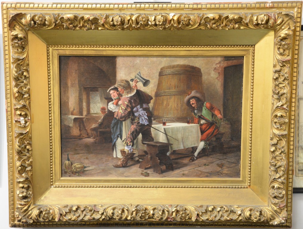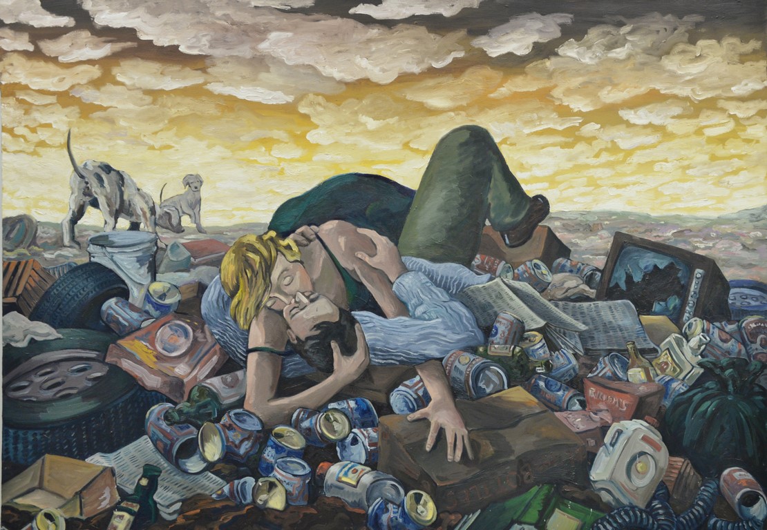 Jerry C. Smith 20th century oil on canvas Kissing at the Dump signed lower left: J. C. Smith 60 x 84 1/4 Provenance: Collection of Ruth and Jerome Siegel