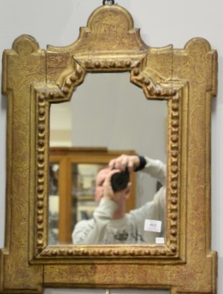 Continental mirror in old gilt with a light floral gesso and punch work design, 18th century or earlier. height 26 1/2 inches, width 20 1/2 inches Provenance: Estate of R. Donald Bassette