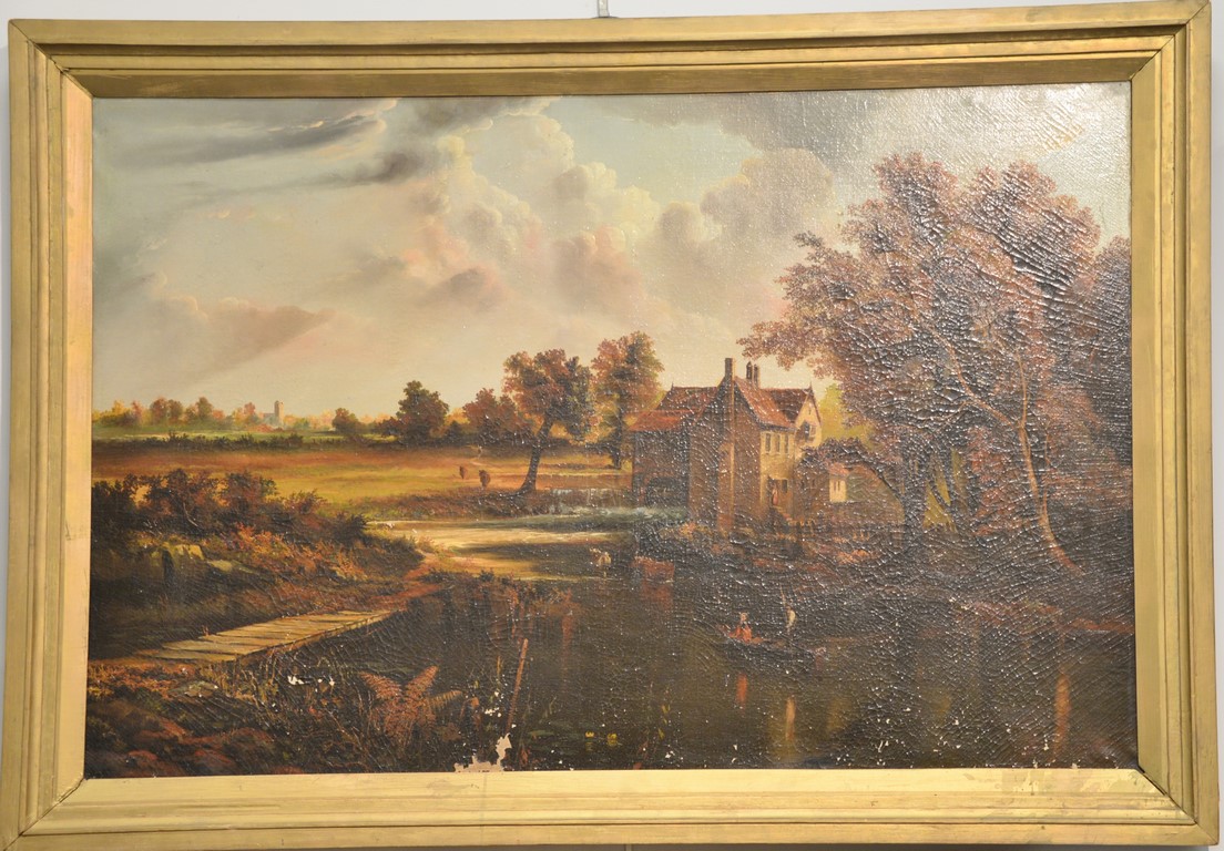 Oil on Canvas September Evening Near St. Albans Eng. titled on verso enscribed on verso: Painted by Constable A.R.A. 19th Century chips, needs restoration 31 x 46 1/2