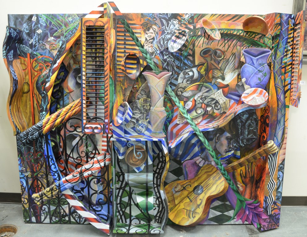 Joanne Carson b. 1953 Three dimensional mixed media sculpture. height 63 inches, width 77 inches, depth 11 inches Provenance: Collection of Ruth and Jerome Siegel