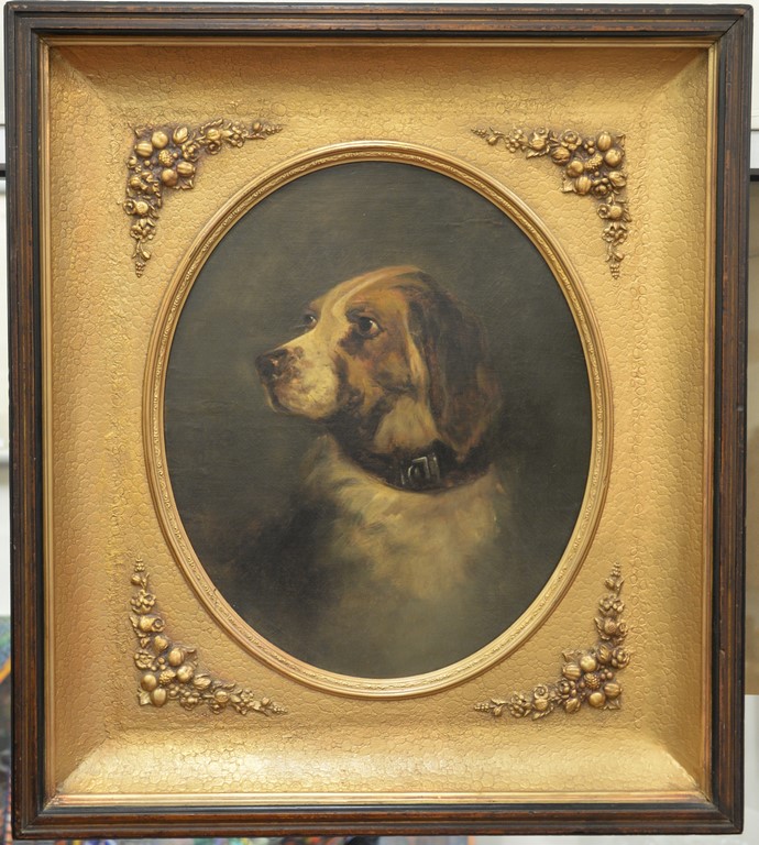 Carl Reichert 1836-1918 oil on canvas Dogs at Play Inside Barn signed lower left: C. Reichert 13 x 16 Being sold with Richmond Gallery receipt from 2006