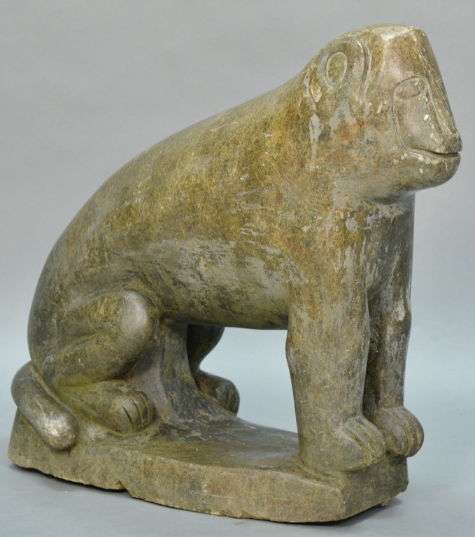 Granite carved animal, monkey. surface scratches, chip on ear and on base height 26 inches, length 30 inches Provenance: Collection of Ruth and Jerome Siegel