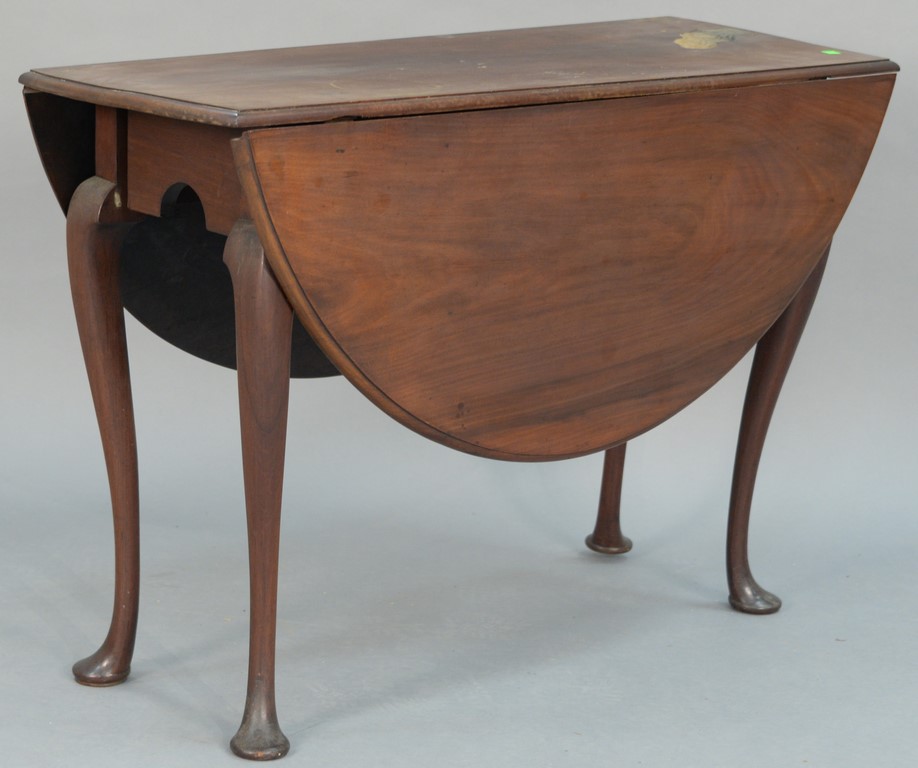 Queen Anne walnut table with oval drop leaves set on cabriole legs ending in pad feet, circa 1750. top removed and reversed height 28 inches, top: 42 x 47 Provenance: Estate of R. Donald Bassette