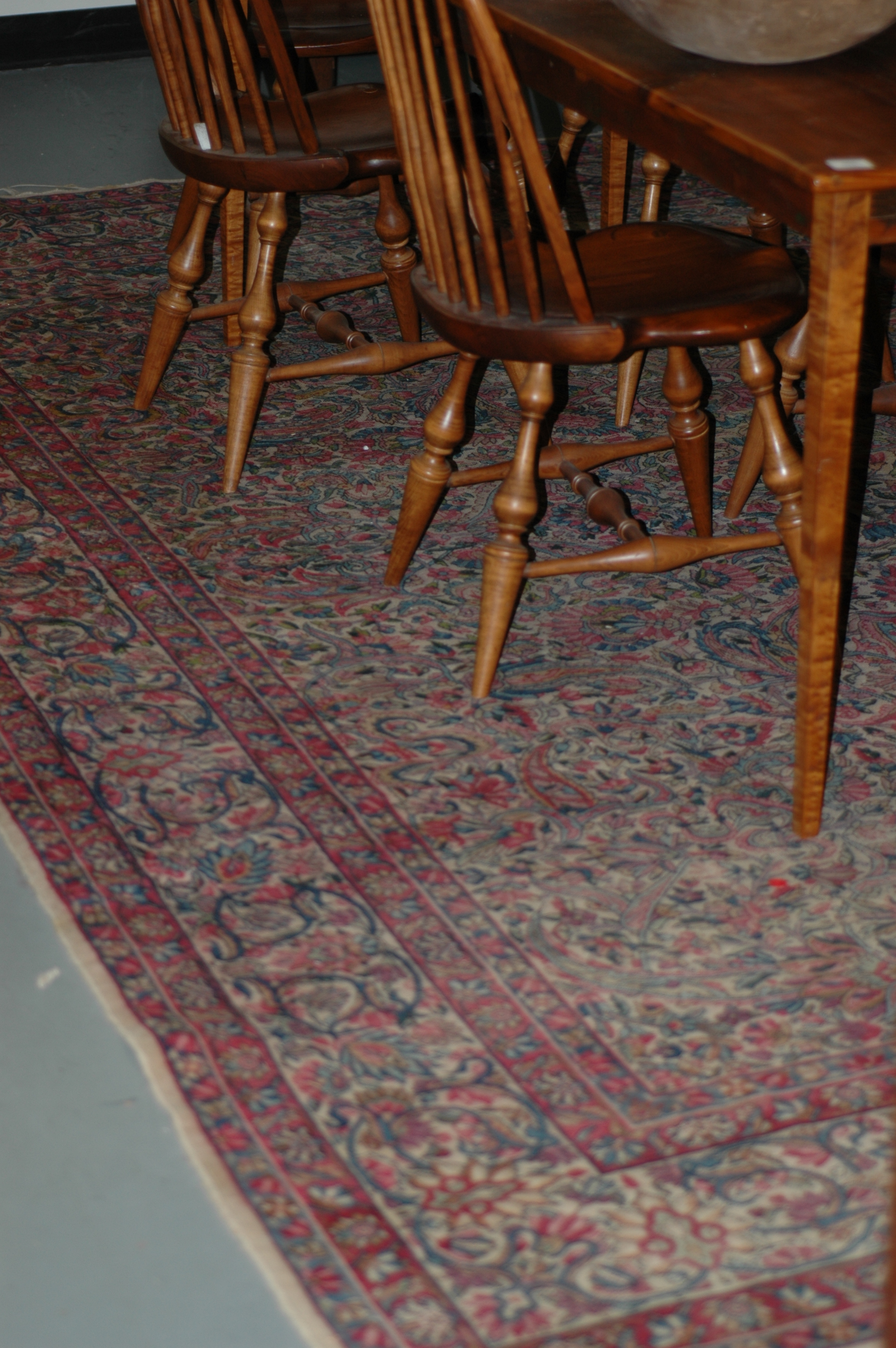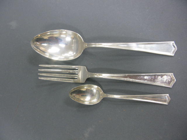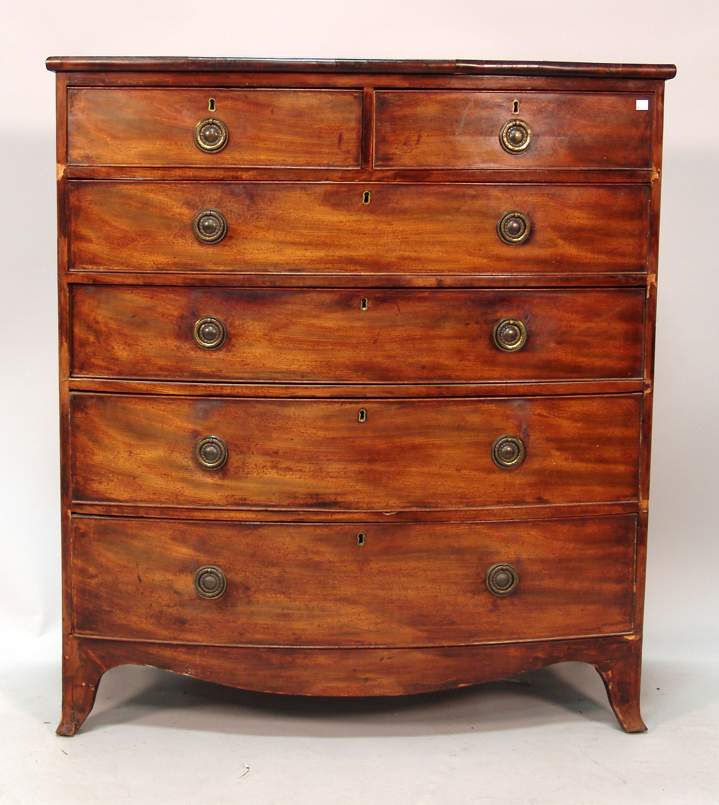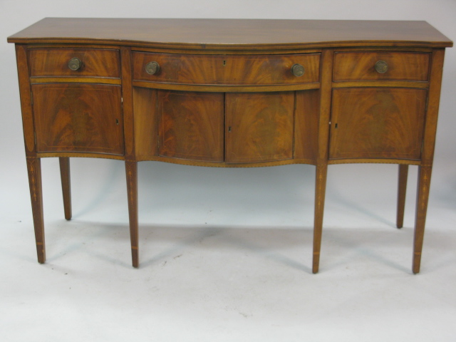 Federal style mahogany sidebaord with three drawers over four doors set on square tapered legs with line panel, bellflower inlay and period Benjamin Franklin brass pulls, made up of old wood.