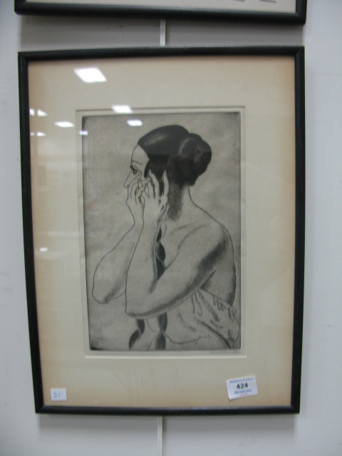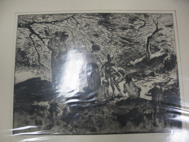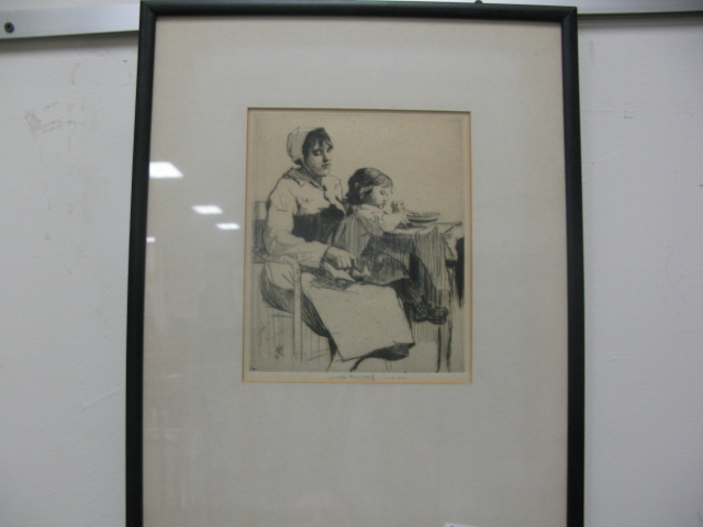 William Lee Hankey 1869-1952 LE REPAS etching on paper, bearing the monogram and pencil signed lower center, plate Kleemann Galleries 38 E. 57th Street, NY label on reverse.