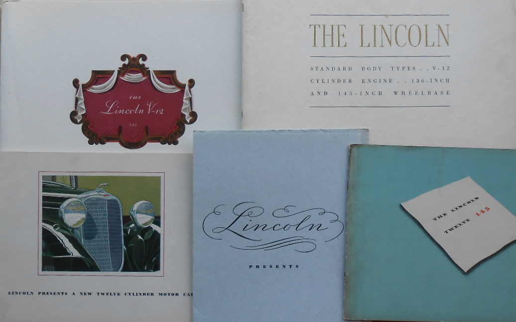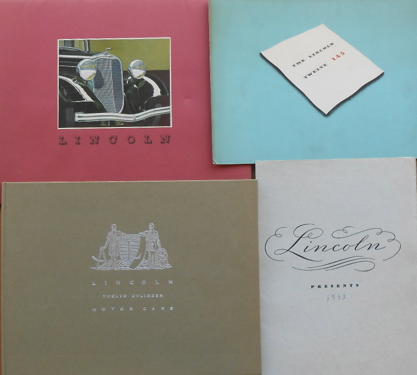 4 Lincoln items – 1932 KB 145 wb, 1933 V 12 136 wb, 1933 two sheet portfolio, 1934 V 12, 145 wb