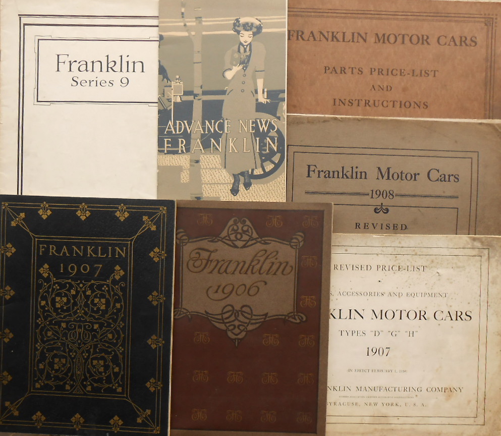 Seven Franklin items – 1906, 1907, 1908, 1916 catalogs and 1907, 1908, 1911 Parts Lists